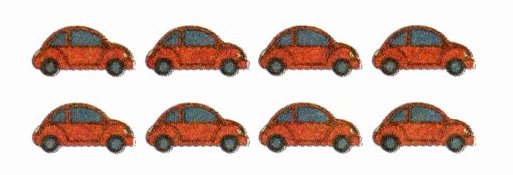 解析:由图可知,车有$8$辆,每辆车有$4$个轮子。求一共有多少个轮子,就是求$8$个$4$是多少,用乘法计算。