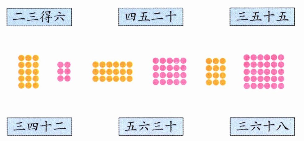 解析:从图中可以看出,花有$6$束,每束有$3$朵。求一共有多少朵花,就是求$6$个$3$是多少,用乘法计算。