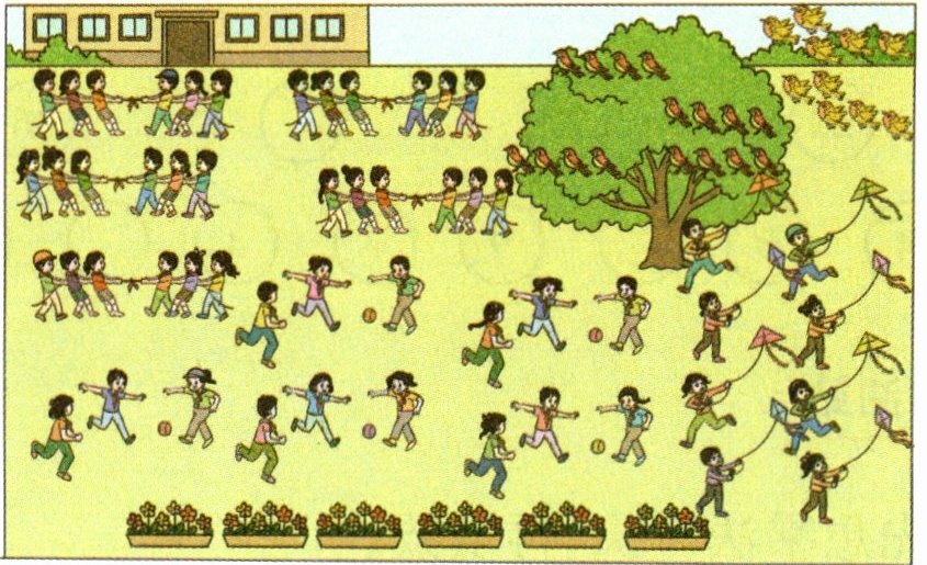 (1)从图中可知拔河分为左右两边,每边有6人,所以总人数为$6+6=12$(人)