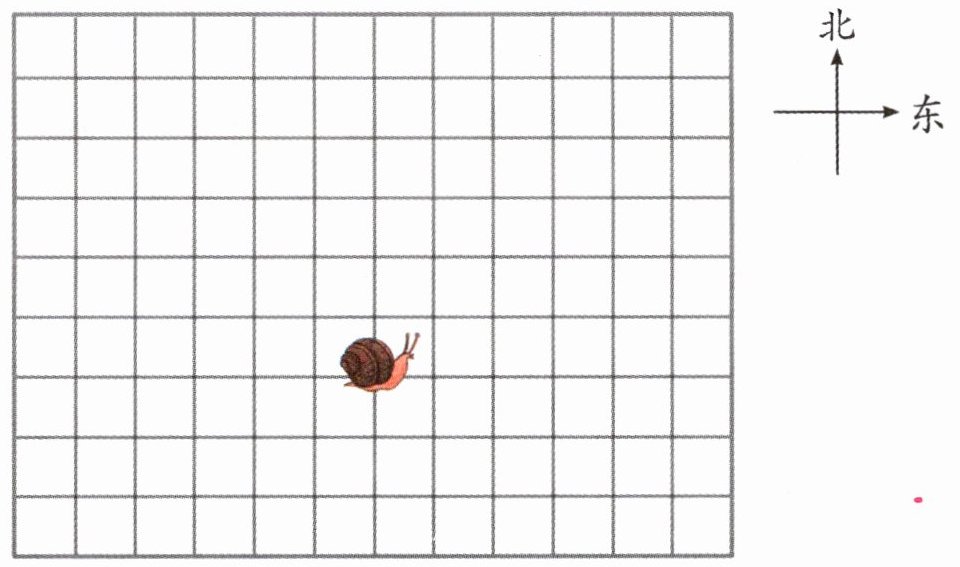 一只蜗牛开始出发,先向北爬行 4 厘米,再向西爬行 5 厘米,最后向南爬行 3 厘米。如果这只蜗牛要回到原处,它至少要爬行多少厘米?画图试一试。(每个方格的边长是 1 厘米)
