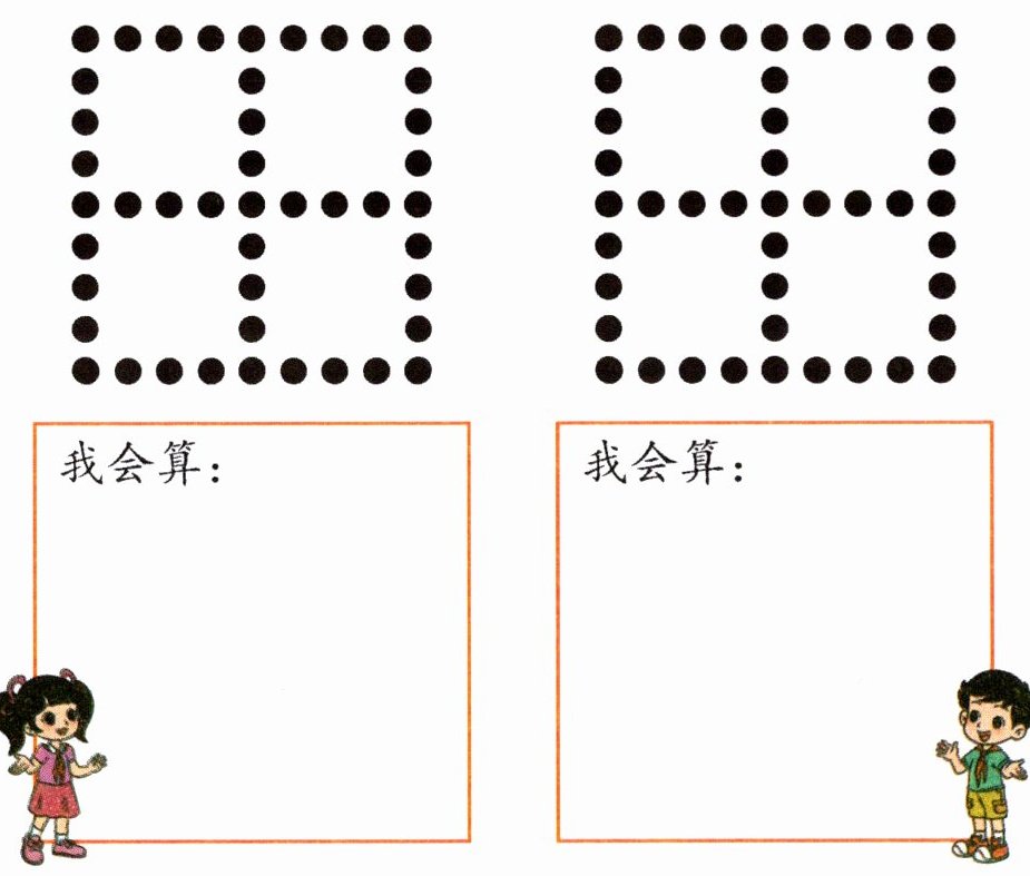 ① 在围棋课上,妙想用棋子摆出了“田”字形,她用了多少颗棋子?用你喜欢的方法先画一画,再计算。