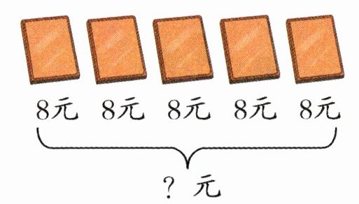 已知一根跳绳$8$元,买$9$根跳绳,就是$9$个$8$相加,用乘法计算。