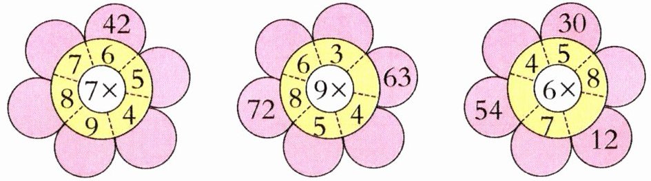 解析:本题可根据乘法口诀来确定花朵中心应填的数。
