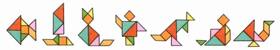 1 下面是用七巧板拼成的不同图案,想一想,填一填。