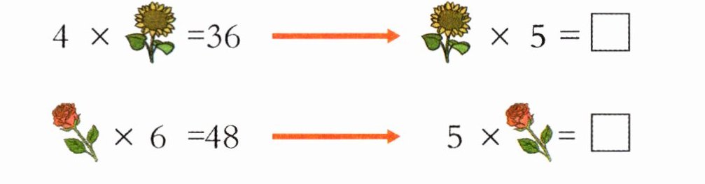 第二组:$4×向日葵=36$,因为$36÷4 = 9$,所以$向日葵=9$,则$向日葵×5 = 9×5 = 45$;