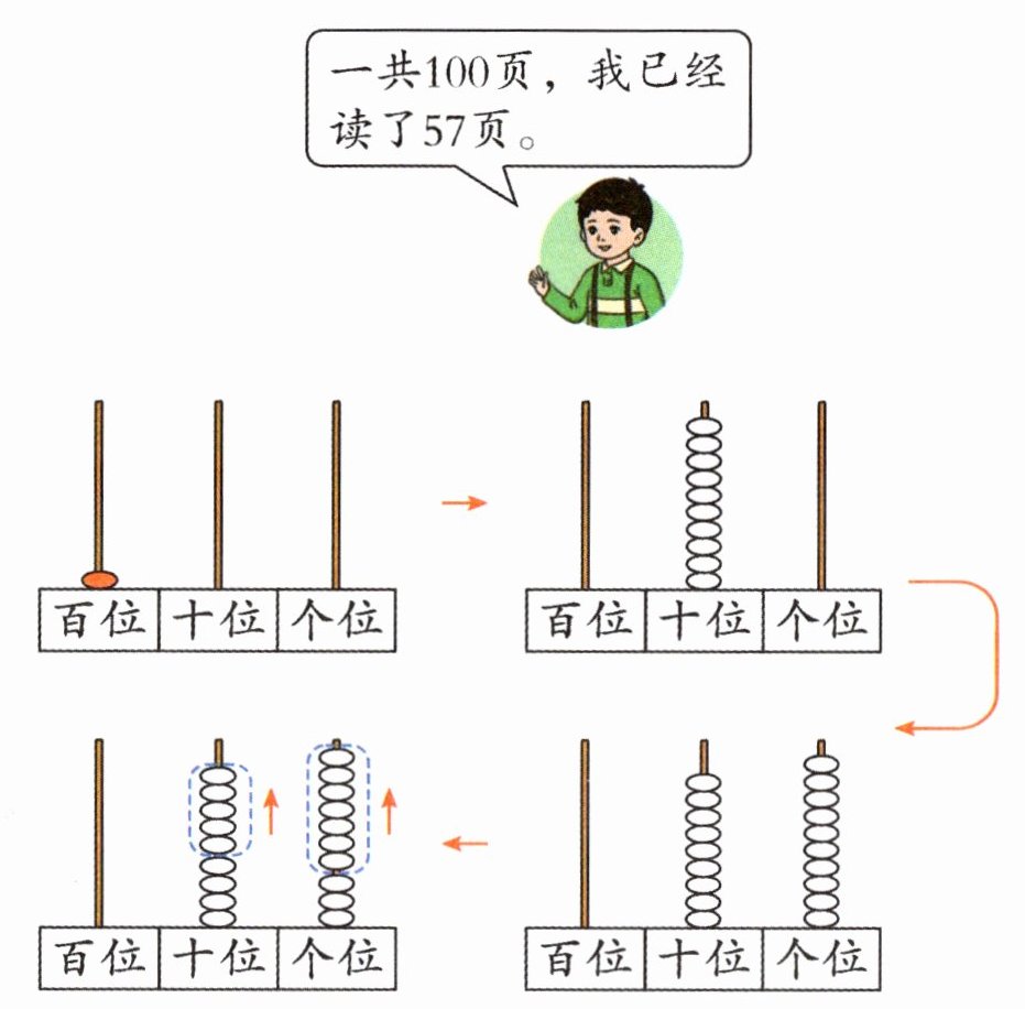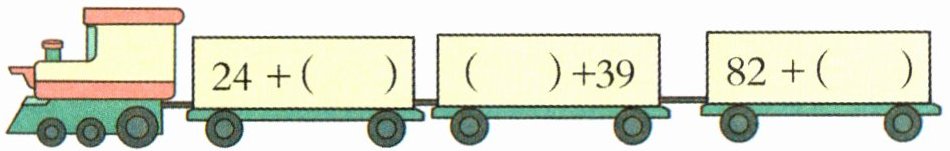 2 在( )里填上合适的数,使每个车厢上的算式得数都等于100。