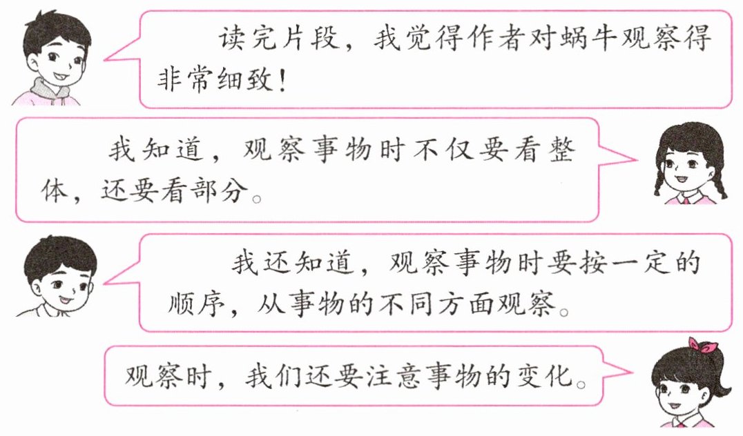 读完片段,我觉得作者对蜗牛观察得非常细致!