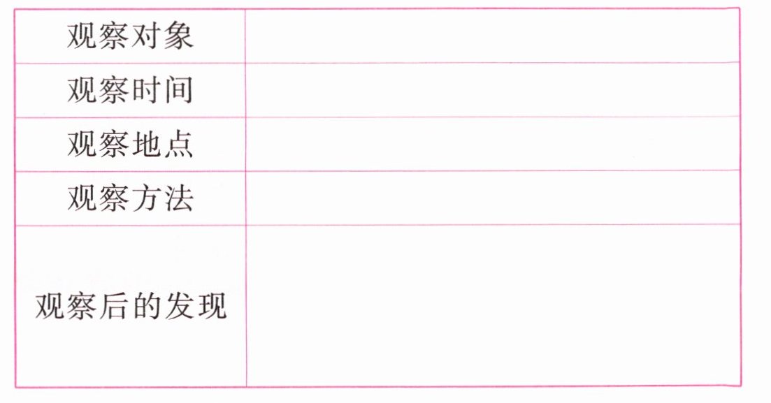 学完课文,请以“我们眼中的缤纷世界”为主题完成一篇习作。动笔之前,请留心观察身边的事物,填写“习作准备记录单”。
