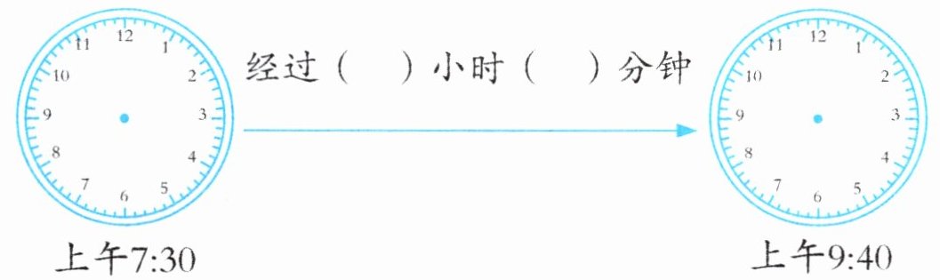 钟面上画出时针和分针(具体画法略),经过(2)小时(10)分钟。