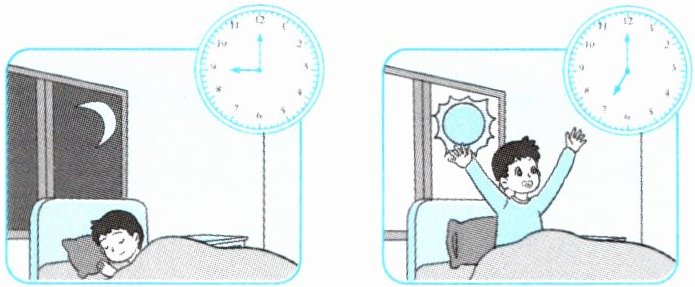 3 亮亮每天晚上睡觉和早上起床的时间如下图所示,他一共睡了多长时间?