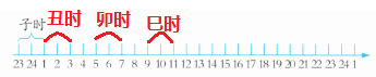 (2)选择三个时辰,照样子在下面的时间轴上标一标。