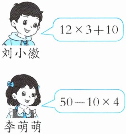 (3)下面是刘小徽和李萌萌列出的算式,分别表示什么意思?根据上图中的信息,写一写。
