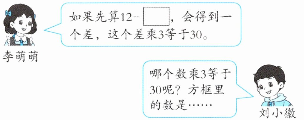 2 李萌萌在计算$12-□×3$时,弄错了运算顺序,先算减法后算乘法,结果得数是 30。正确的结果是(