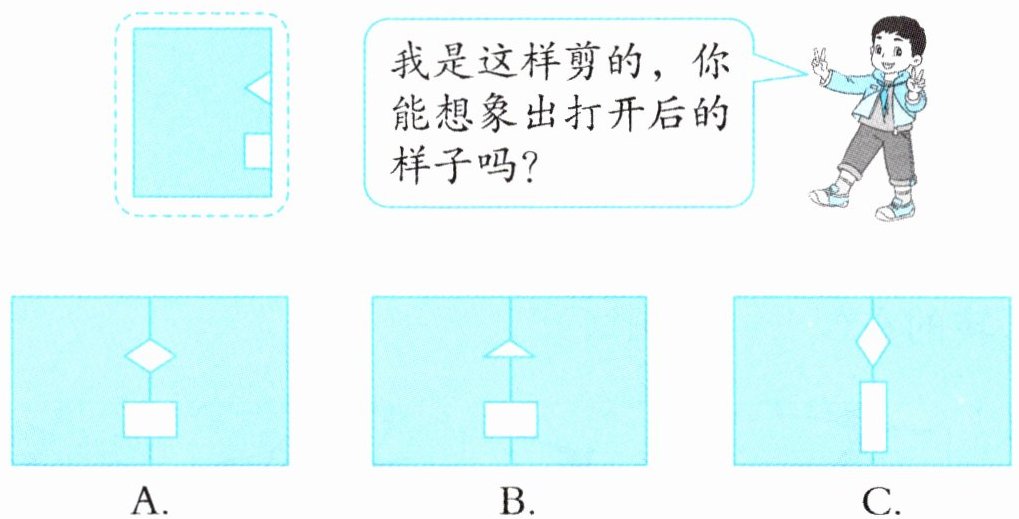 3 安安在对折好的纸上剪了两个洞,打开后是(