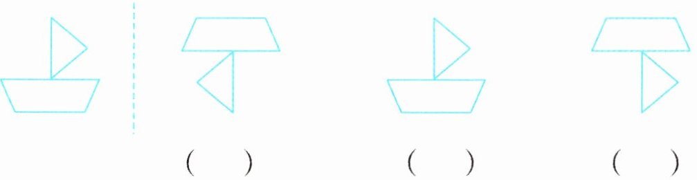 2 左图在水中的倒影是哪一个?在( )里画“√”。