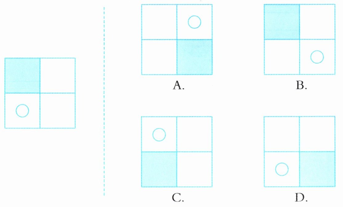 将与图形A方向相同,且通过水平或垂直方向直线移动能完全重合的图形(如图中与A形状位置经平移可重合的图形,假设图中右侧下方某个图形)涂上颜色。 (因无图,实际作答时需根据具体图形判断,涂出符合平移后与A重合的图形)