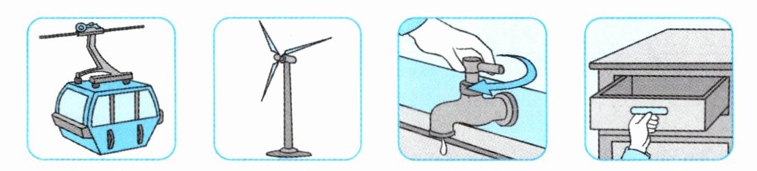 1 观察下面物体的运动,是平移的在( )里画“$\triangle$”,是旋转的在( )里画“$○$”。