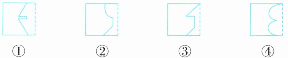 2 下面的图形分别是从哪张对折的纸上剪下来的?在( )里填入相应的序号。