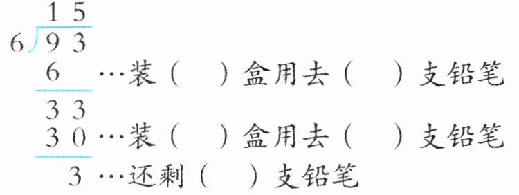 (3)如图,每盒放 6 支铅笔,93 支铅笔最多可以装满(