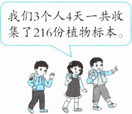 我们 3 个人 4 天一共收集了 216 份植物标本。