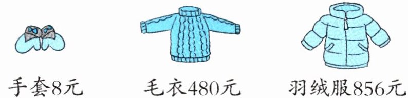 (2)一件羽绒服的价格是一副手套的多少倍?