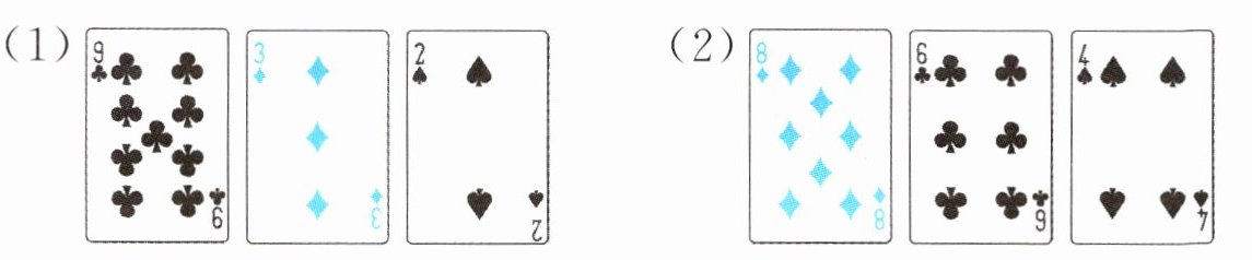 1 用下面三张牌上的数算出 24,请分别列出综合算式。