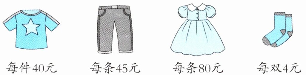 (1)刘小徽的妈妈买了 2 件上衣和 1 条裤子,一共花了多少元?