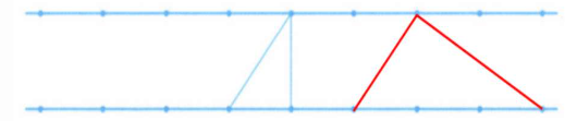 如图,两平行线间有一个三角形,请你画一个面积是这个三角形面积 3 倍的三角形。(直线上每相邻两点之间的距离相等)