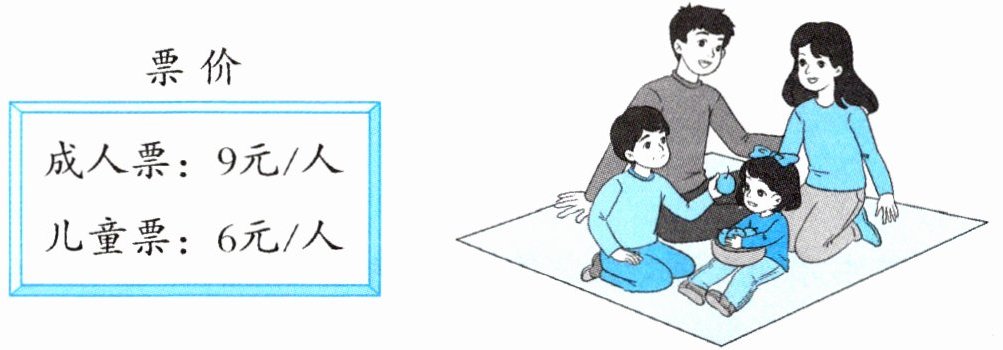 3 一家四口去公园游玩,其中有2个大人,2个儿童。买门票一共需要花多少元?