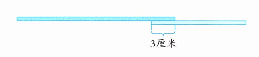 劳动课上,小明需要将两根分别长 20 厘米和 12 厘米的木条连接起来(如图)。如果重叠部分的长度是 3 厘米,那么连接后木棒的总长度是多少厘米?