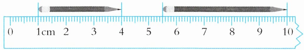 (1)如下图所示,右边的铅笔比左边的铅笔长()。