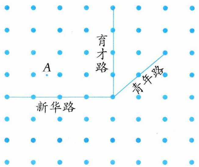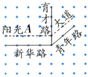 3 下面是某城市的局部交通线路图。该城市将再修一条阳光大道,该大道在育才路左侧的部分经过 $ A $ 点并与新华路平行,在育才路右侧的部分与青年路平行。请画出阳光大道的示意图。