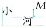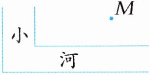 1 赵伯伯家住在 $ M $ 点处,他要到河边去挑水。请你为赵伯伯设计一条路线,使挑水路线最短,请画出来。
