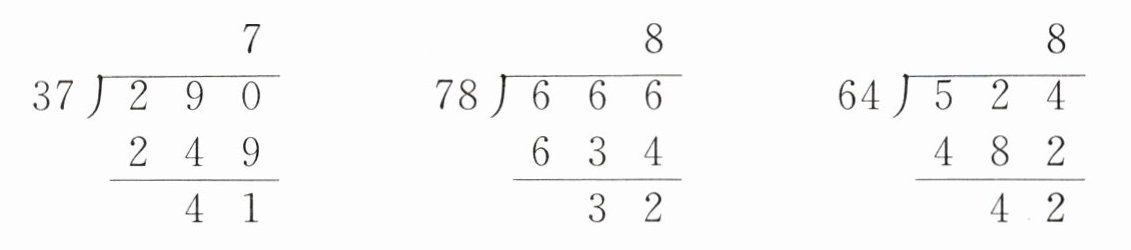 试商:把94看作90,738里最多有8个90,试商8,$94×8 = 752\gt738$,商大了,调小为7,$94×7 = 658$,$738 - 658 = 80$,$80\lt94$,则$738÷94 = 7\cdots\cdots80$。