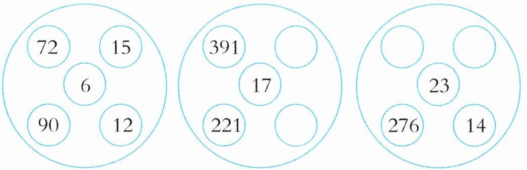 1 先观察第一个圆圈内数的特点,然后根据规律把后面两个圆圈内的数补充完整。