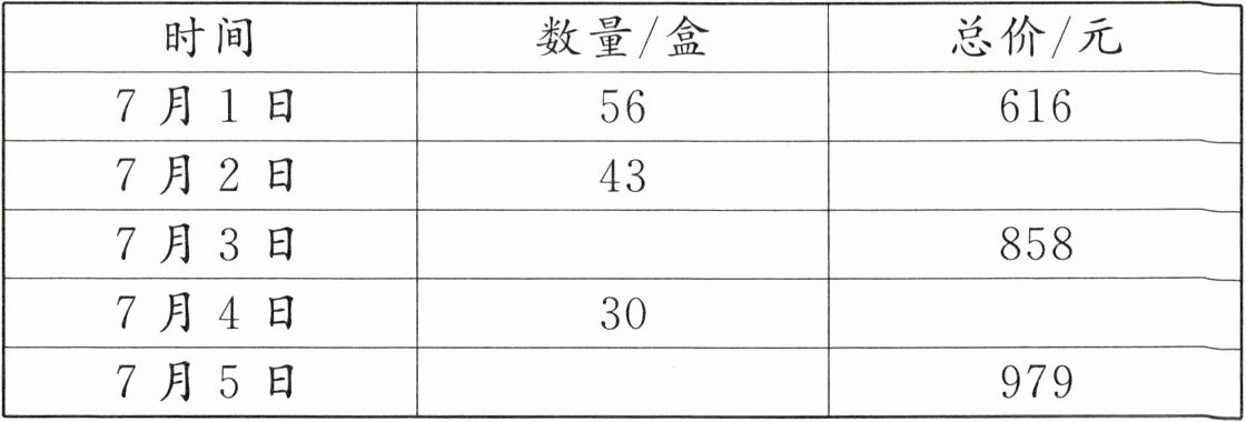 2 下面是某超市出售某饮料的记录表,请将它填写完整。