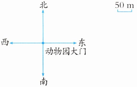(4)长颈鹿馆在大门的正东方向$100\mathrm{m}$处。