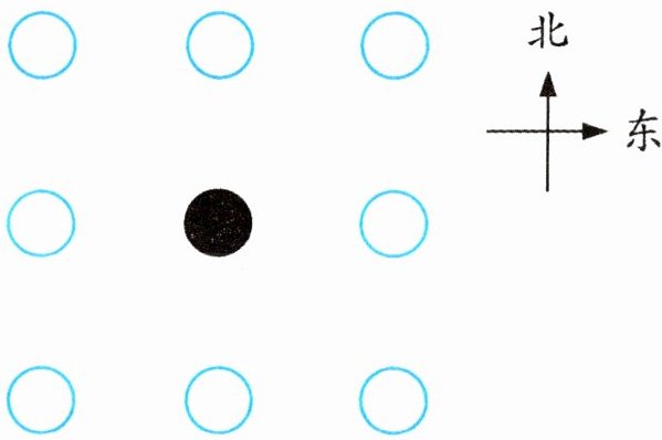 设黑色圆圈为原点,根据“上北下南,左西右东”,八个方向分别为北、东北、东、东南、南、西南、西、西北。