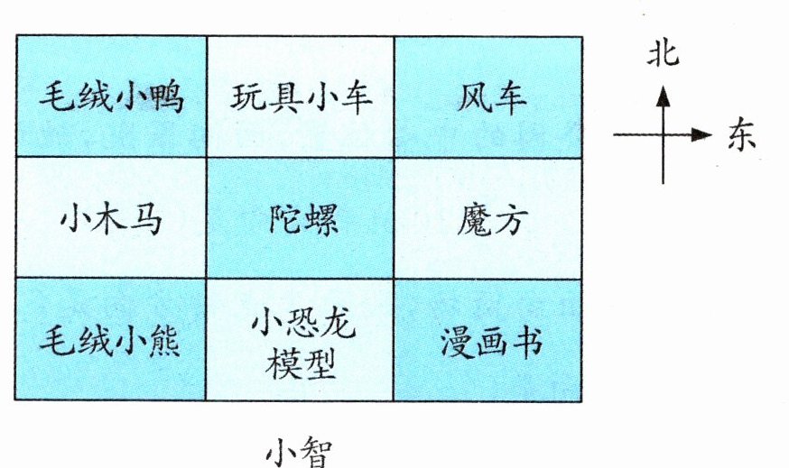 (2)如果小智想要一个玩具小车,他需要朝()的西面扔套圈。