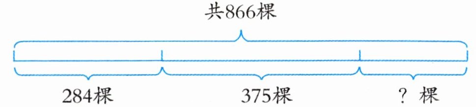 共 866 棵,284 棵,375 棵,?棵