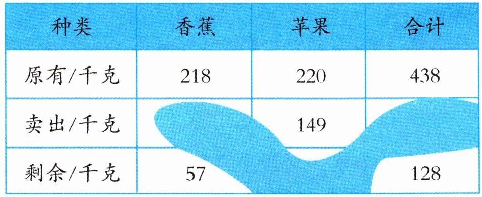 (表格填写:香蕉卖出161千克,苹果剩余71千克,卖出合计310千克)