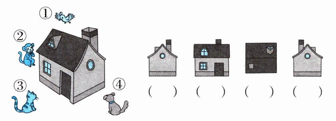 2. 小松从窗外看到的场景是下面的哪幅图? 在括号里画“√”,并说说你的理由。