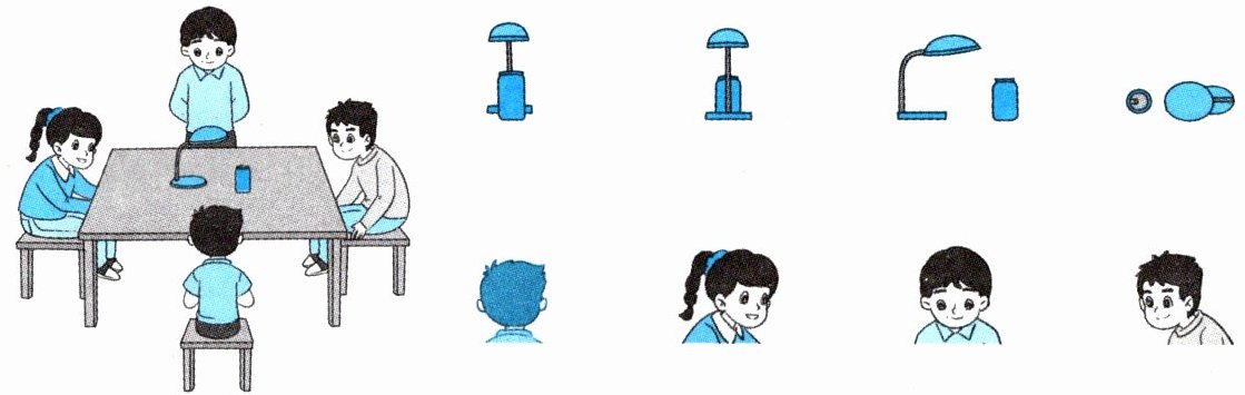 1. 下面四幅图分别是谁看到的? 想一想,连一连。