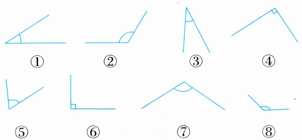 锐角:(①③⑤) 直角:(④⑥) 钝角:(②⑦⑧)