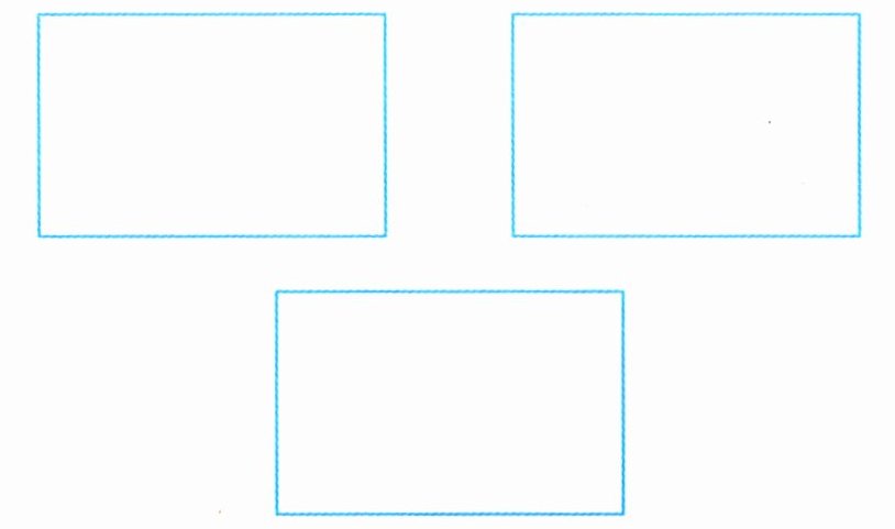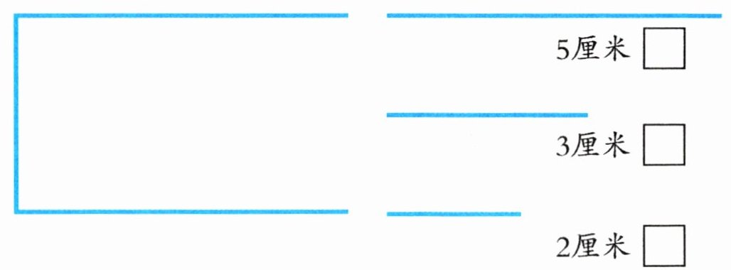 2. 动手剪一剪,在长方形上各剪一刀,使剩下的图形分别有三个角、四个角和五个角,并在下图中画一画。