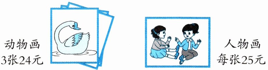 (1)小智选了1张动物画和1张人物画,需要付多少元?