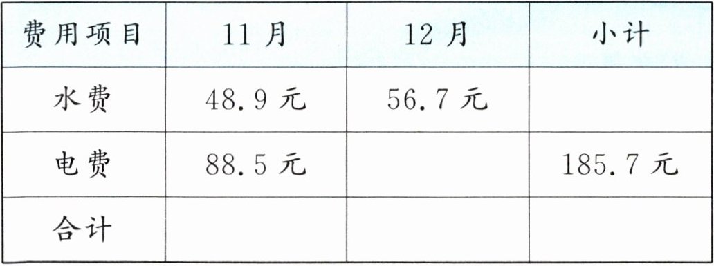 (3)记录你家今年最近两次的水费、电费支出情况,算一算一共是多少元?