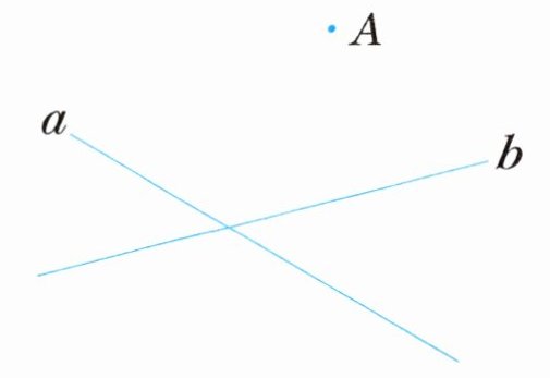 2 过 $ A $ 点分别画出 $ a $、$ b $ 两条直线的垂线。