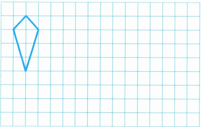1 把下面的图形向右平移 6 格后画出来,再把这两个图形中互相平行的线段分别用同种颜色的彩笔描出来。
