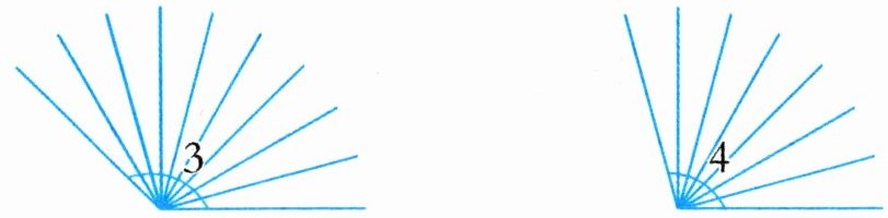 (4)体育课上,老师让大家向左转,小明至少转()次可以转到一个平角;至少转()次可以转到一个周角。